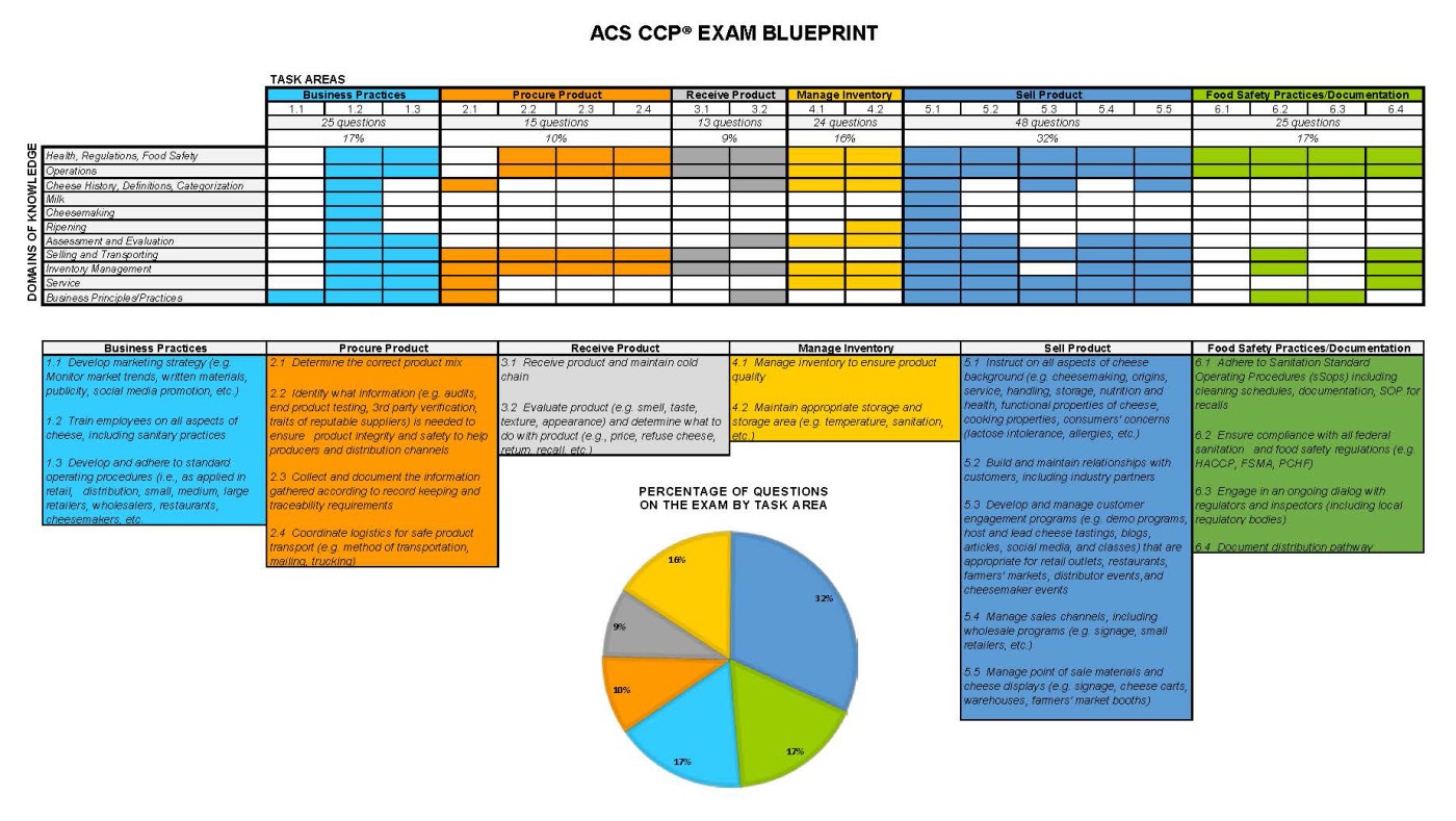 The ACS Certified Cheese Professional® Exam encourages improved standards of comprehensive cheese knowledge and service, offering professionals in the cheese industry the opportunity to earn the distinguished title of ACS Certified Cheese Professional®, or ACS CCP®. The letters ACS CCP® designate that an individual has acquired thorough knowledge and the level of expertise that is demanded within the cheese industry.