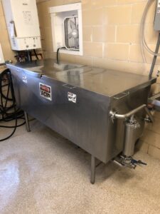150 gallon Qualtech COP wash tank (2011). See this link (https://qualtech.ca/portfolio_page/c-o-p-tank/) for description and additional photos. 45″ tall, 32″ deep, 80″ long. Jacketed, jet-wash system with circulation pump, filter, lids and drain valve. $8,500.